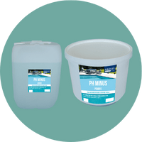 - pH Minus liquide, généralement à base d’acide sulfurique, souvent utilisé avec des systèmes de régulation automatique.