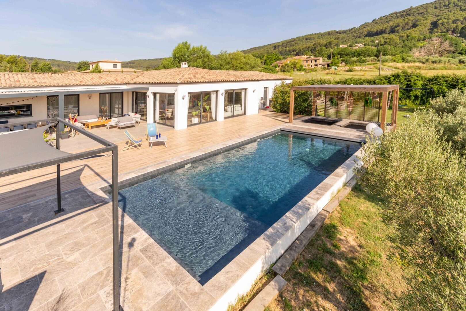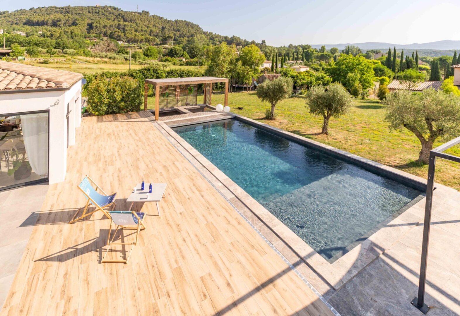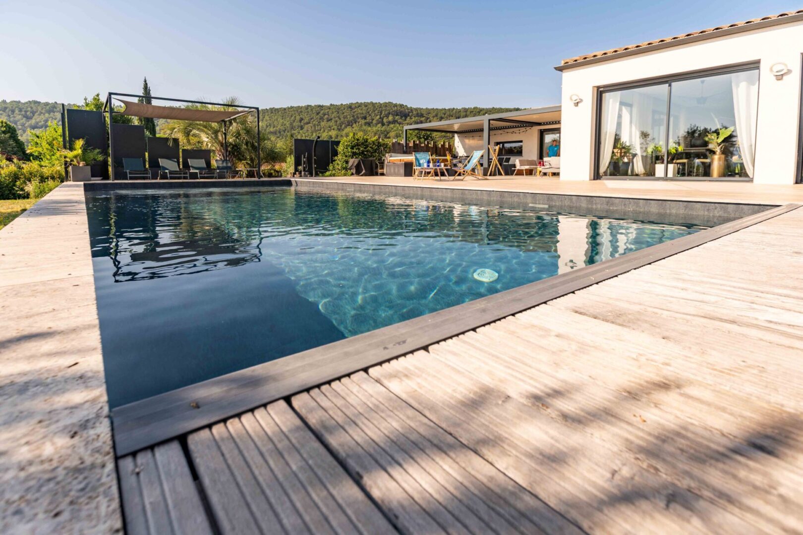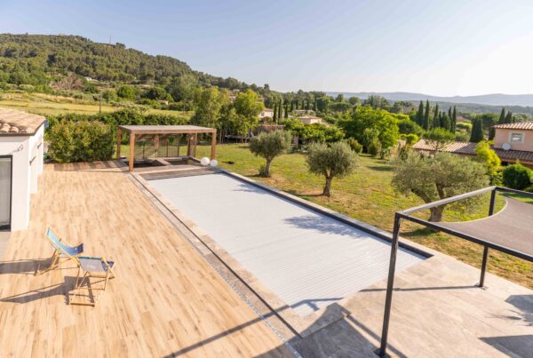 Quelque part en Provence, une famille de quatre personnes a fait le choix d’une piscine familiale et conviviale. Le terrain présente une légère pente face aux collines. Pourtant, c’est précisément ce cadre naturel qui donne tout son charme à ce projet.