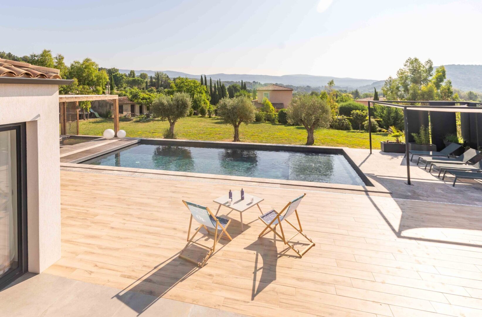 La piscine BORA s’inscrit dans la continuité architecturale du mas. Ses lignes épurées s’harmonisent naturellement avec le paysage provençal. Ainsi, les margelles semblent avoir toujours fait partie des lieux.