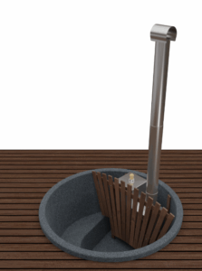 Choix parmi 2 dimensions de cuve (160 cm ou 180 cm), 2 systèmes de chauffage de l’eau (poêle intégré ou poêle déporté 45 kw) et la cuve se personnalise, grâce à la tablette bois périmétrique.